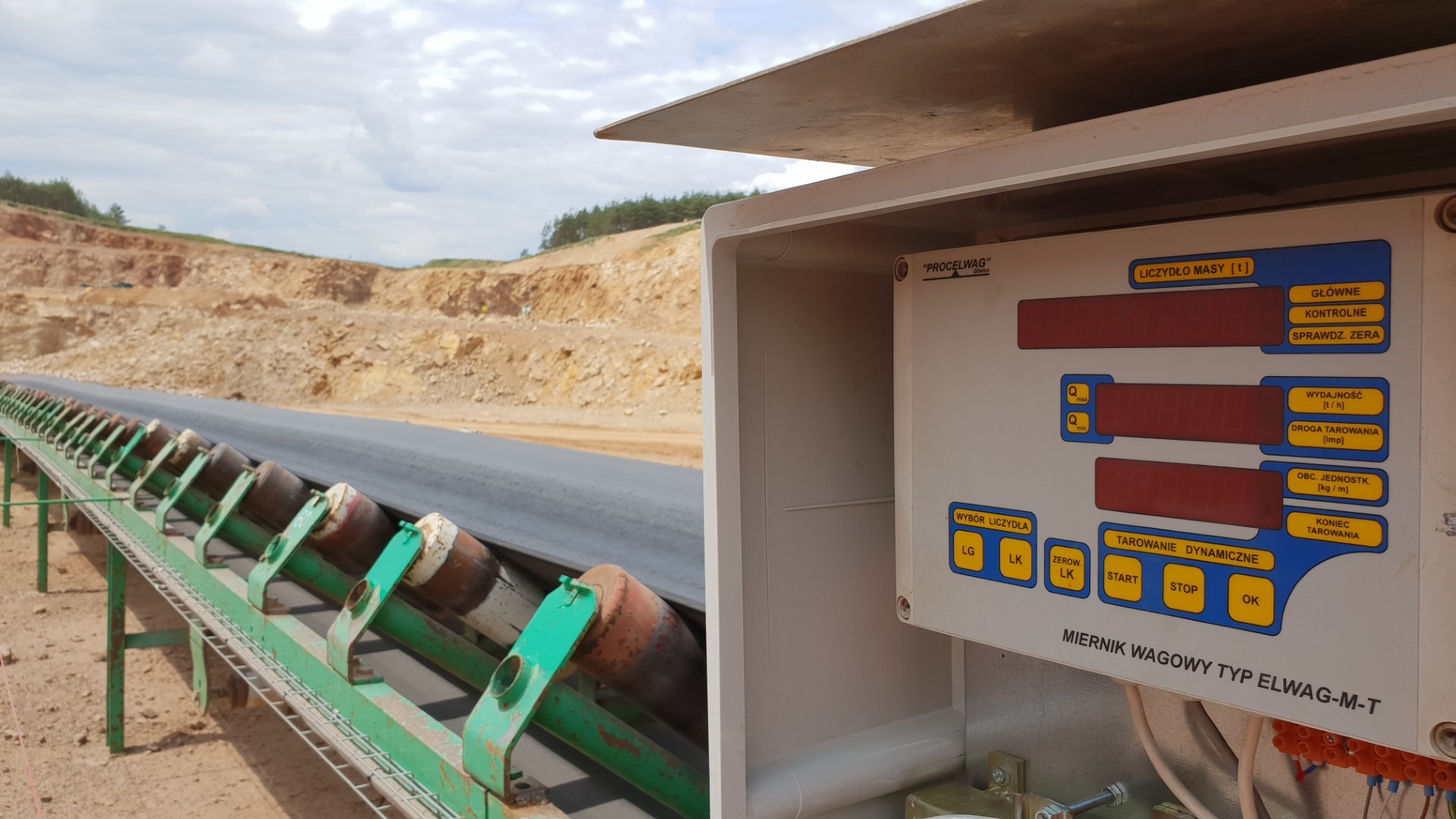 Wagi taśmociągowe typu EWC-T wykorzystują terminal wagowy ELWAG-M-T firmy PROCELWAG. Terminal wagi służy do informowania operatora o realizowanych przez wagę funkcjach. Na wyświetlaczu wyświetlane są informacje dotyczące licznika masy, wydajności oraz wartości aktualnego obciążenia taśmy.